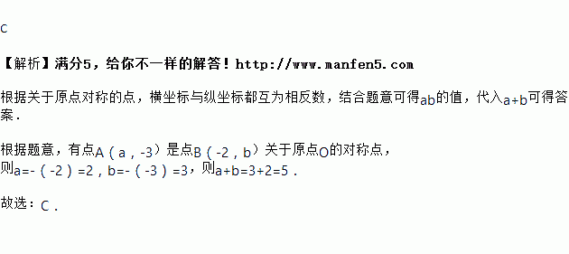 已知点是点关于原点的对称点,则的值为( )
