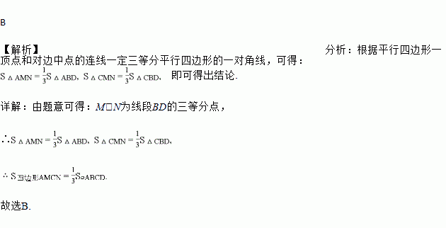 如图,在□ABCD中,E、F分别为BC、AD的中点,AE、CF分别交BD于点M、N,则四边形 AMCN与□ABCD的面积比为( )