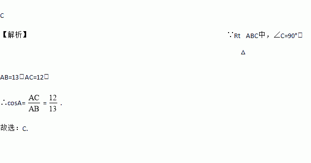 在Rt△ABC中,∠C=90°,AB=13,AC=12,则cosA=( )