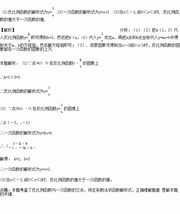(1)求反比例函数解析式;