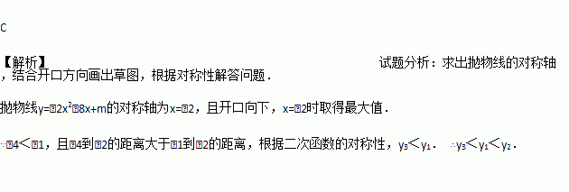 已知(﹣1,y1),(﹣2,y2),(﹣4,y3)是抛物线y=﹣2x2﹣8x+m上的点,则( )