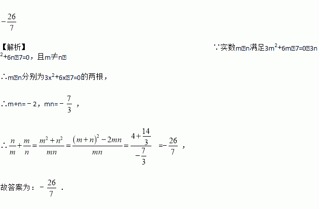 已知实数m,n满足3m2+6m﹣7=0,3n2+6n﹣7=0,且m≠n,则=_____.