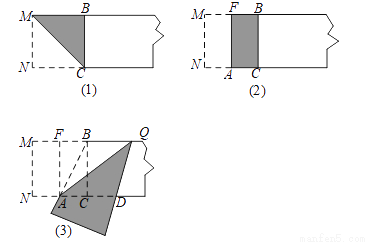 第一步,在一张宽为2的矩形纸片的一端,利用图(1)的方法折出一个正方形,然后把纸片展平,折痕为MC;