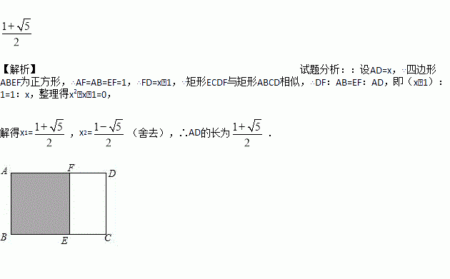 如图,已知矩形纸片ABCD中,AB=1,剪去正方形ABEF,得到的矩形ECDF与矩形ABCD相似,则AD的长为_____.