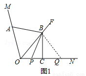 ∵BC垂直平分OQ,∴BO=BQ,∴∠BOQ=∠BQO,∵OF平分∠MON,∴∠AOB=∠BQO,∵OA=PQ,∴△AOB≌△PQB,∴AB=PB.
