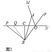 (2)如图2,当P、Q两点都在射线ON的反向延长线上时,线段AB,PB是否还存在(1)中的数量关系?若存在,请写出证明过程;若不存在,请说明理由;
