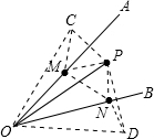 (2)分别作点P关于OA、OB的对称点C、D,连接CD,分别交OA、OB于点M、N,连接OP、OC、OD、PM、PN.