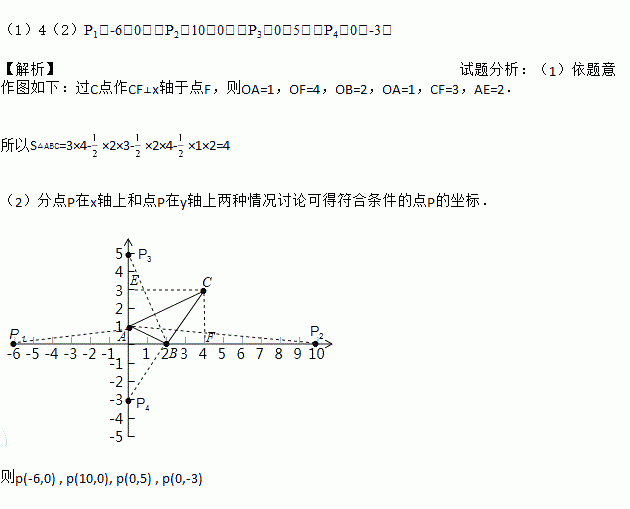 (2)设点P在坐标轴上,且△ABP与△ABC的面积相等,求点P的坐标.