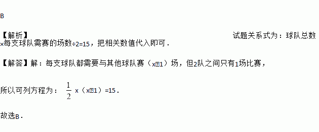 要组织一次篮球邀请赛,参赛的每个队之间都要比赛一场,计划安排15场比赛,设比赛组织者应邀请x个队参赛,则x满足的关系式为( )