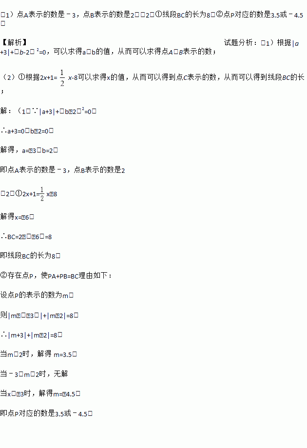 ②在数轴上是否存在点P,使PA+PB=BC?求出点P对应的数;若不存在,说明理由.