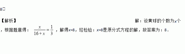 在一个不透明的盒子中装有16个白球,若干个黄球,它们除了颜色不同外,其余均相同,若从中随机摸出一个球是黄球的概率是,则黄球的个数为______.