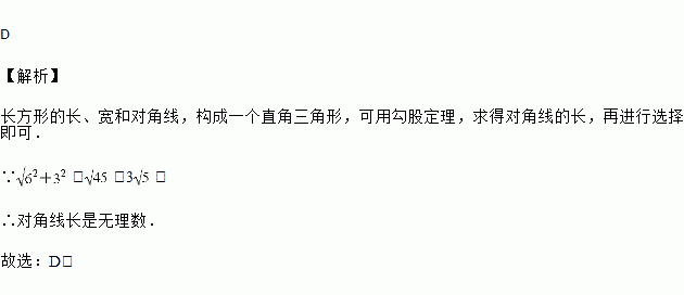 一个长方形的长与宽分别是6、3,它的对角线的长可能是( )