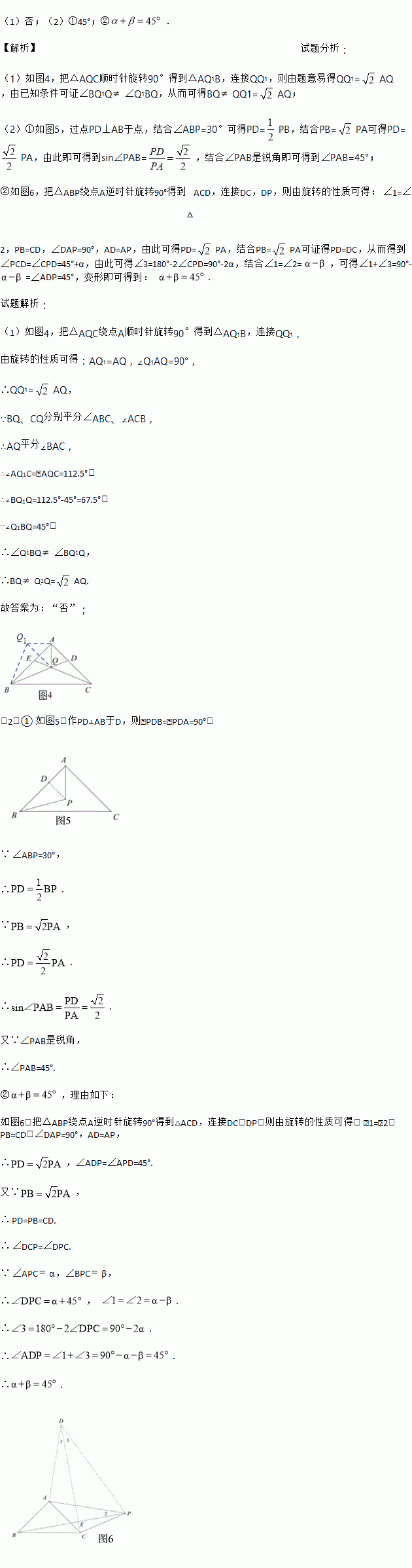 ①如图2,点P在△ABC内,∠ABP