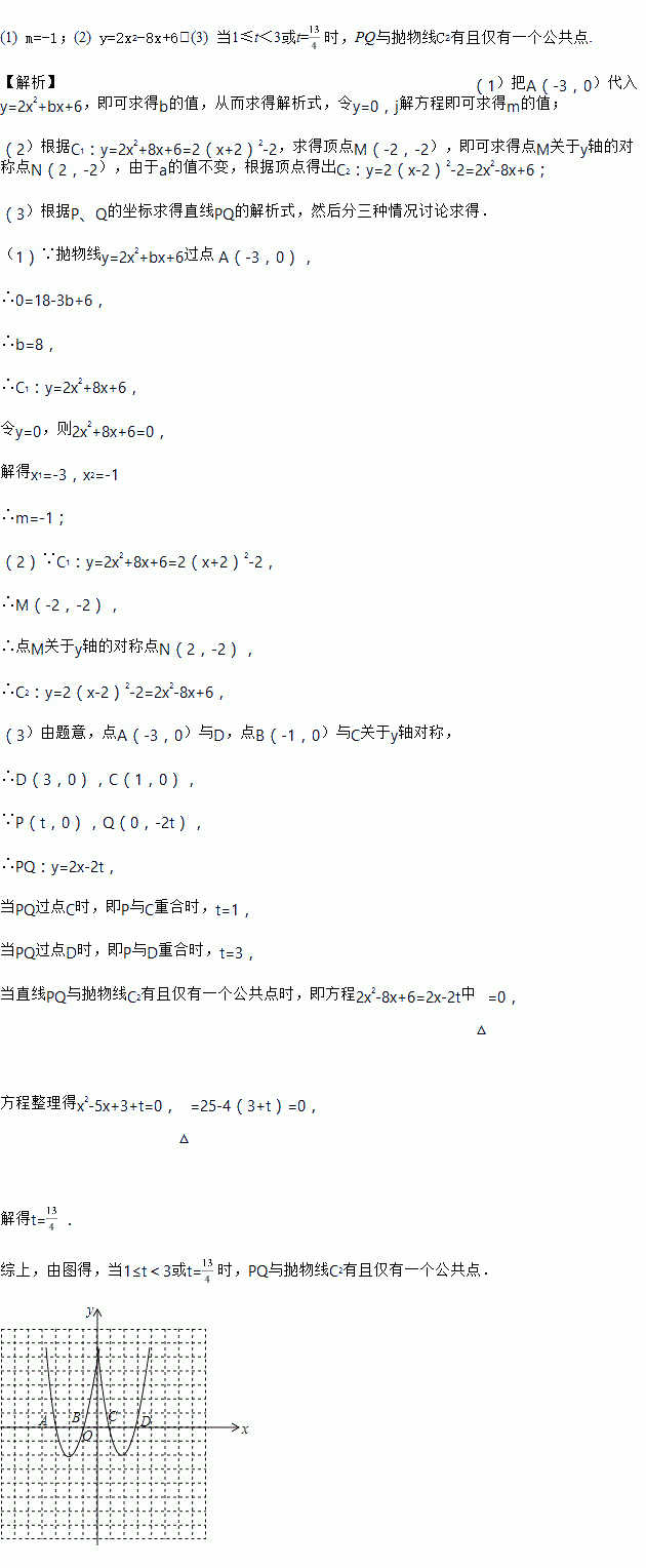 (3)在x轴, y轴上分别有点P(t, 0), Q(0, -2t), 其中t>0, 当线段PQ与抛物线
