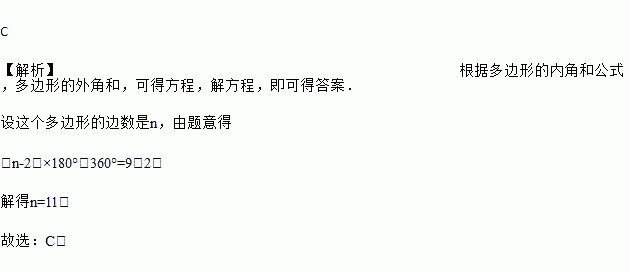 已知一个多边形的内角和与外角和的比是9:2,则这个多边形的边数是