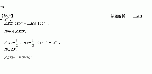 如图,点A,C,F,B在同一直线上,CD平分∠ECB,FG∥CD,若∠ECA的度数为40°,则∠GFB的度数为___________.