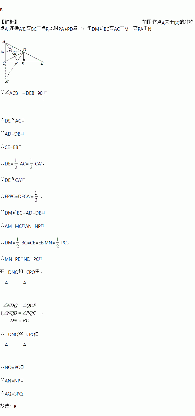 如图,在中, ,点是边的中点,过作于点,点是边上的一个动点, 与相交于点.当的值最小时, 与之间的数量关系是( )