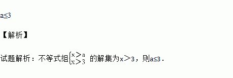 若不等式组的解集为x>3,则a的取值范围是________ .