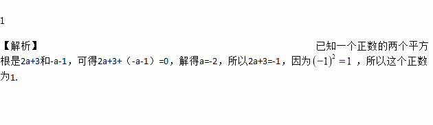 若一个正数的两个平方根是2a+3和-a-1,则这个正数是________________ .