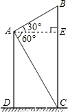 如图,小明在楼上点A处观察旗杆BC,测得旗杆顶部B的仰角为30°,测得旗杆底部C的俯角为60°,已知点A距地面的高AD为12m.求旗杆的高度.