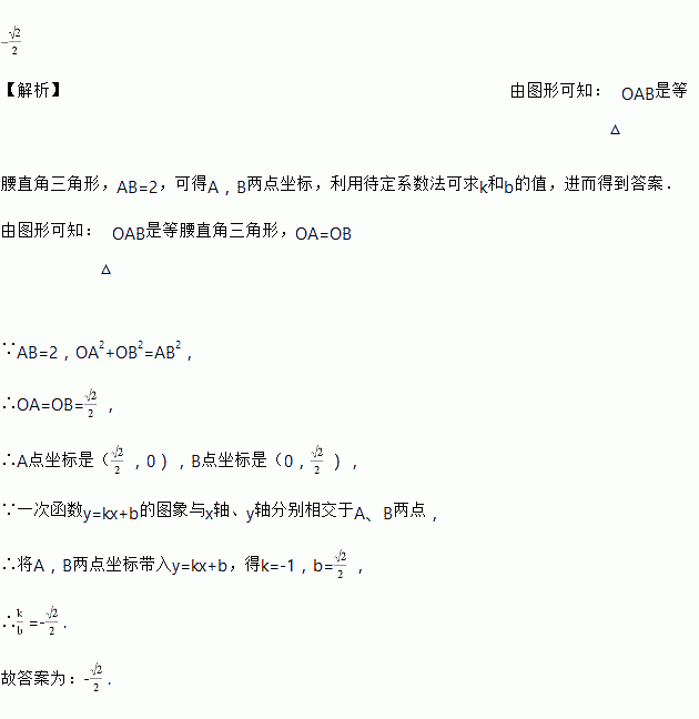 如图,一次函数y=kx+b的图象与x轴、y轴分别相交于A、B两点,⊙O经过A,B两点,已知AB=2,则