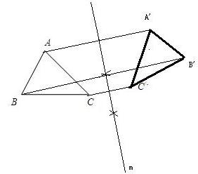 22、如图,已知△ABC,作出△ABC的关于某条直线m的轴对称图形△A′B′C′,使C点的对称点为C′点.