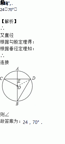 如图,在⊙O中,直径AB的长是26,弦CD⊥AB交AB于E,若OE=5,则CD的长度为 ,若∠B=35°,则∠AOC= .