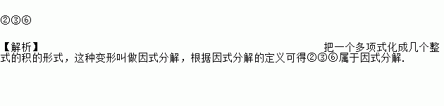①(x+5)(x-5)=x2-25 ②x2-9=(x+3)(x-3) ③x2+2x-3=(x+3)(x-1) ④9x2-6x+1=3x(3x-2)+1 ⑤x+1=x(1+