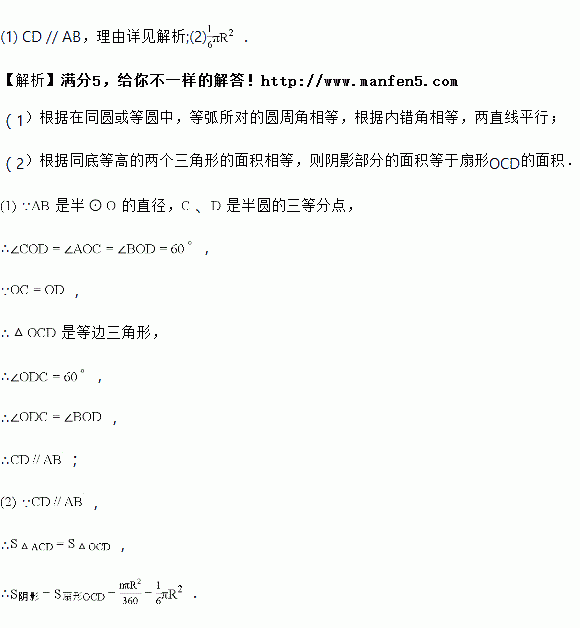 如图,是半的直径,、是半圆的三等分点,半圆的半径为.
