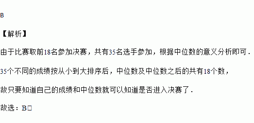某校有35名同学参加眉山市的三苏文化知识竞赛,预赛分数各不相同,取前18名同学参加决赛. 其中一名同学知道自己的分数后,要判断自己能否进入决赛,只需要知道这35名同学分数的( ).