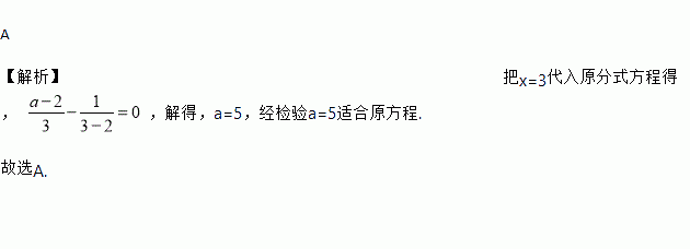 若x=3是分式方程-=0的根,则a的值是 ( )