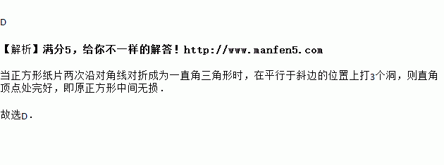 如图所示,将一个正方形纸片对折两次,然后再上面打3个洞,则纸片展开后是( )