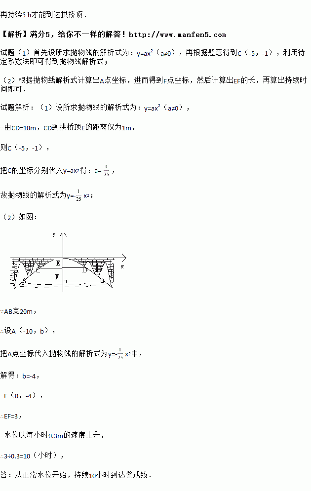 (2)若洪水到来时,水位以每小时0.2 m的速度上升,从警戒线开始,再持续多少小时才能到达拱桥顶?
