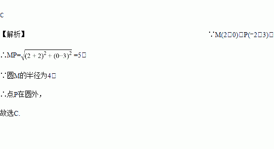 中,点M的坐标为(2,0),⊙M的半径为4,则点P(-2,3)与⊙M的位置关系是( )