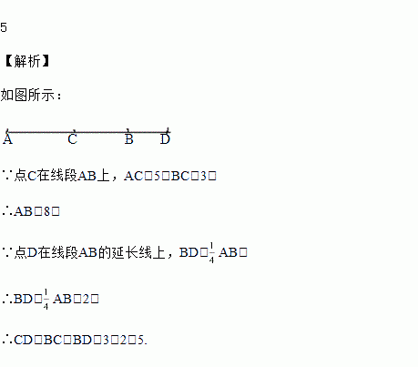 已知点C在线段AB上,点D在线段AB的延长线上,若AC=5,BC=3,BD=AB,求CD的长.
