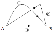 如上图,从A到B有3条路径,最短的路径是③,理由是( )