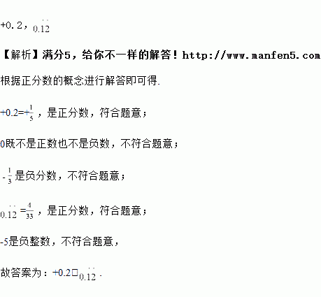 在有理数+0.2,0,,,-5中,为正分数的是____.