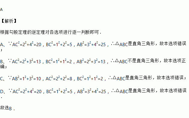 如图,在四个均由十六个小正方形组成的正方形网格中,各有一个三角形ABC,那么这四个三角形中,不是直角三角形的是( )