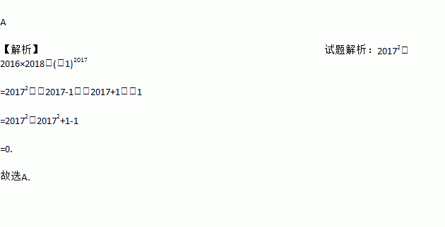 A 【解析】试题解析:20172-2016×2018+(-1)2017 =20172-(2017-1)(2017+1)-1 =20172-20172+1-1 =0. 故选A.