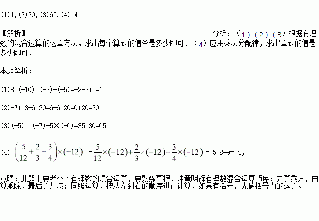 计算:(1)8+(-10)+(-2)-(-5) (2)