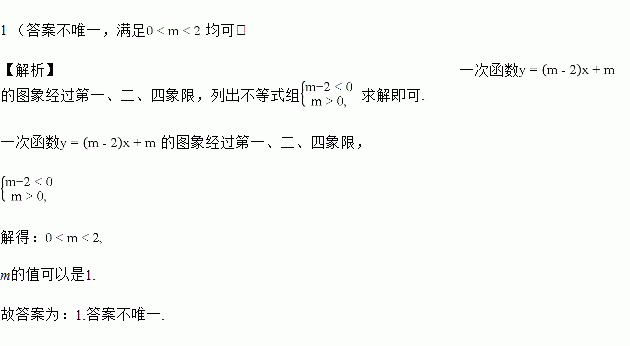 若由你选择一个喜欢的数值m,使一次函数的图象经过第一、二、四象限,则m的值可以是___________.