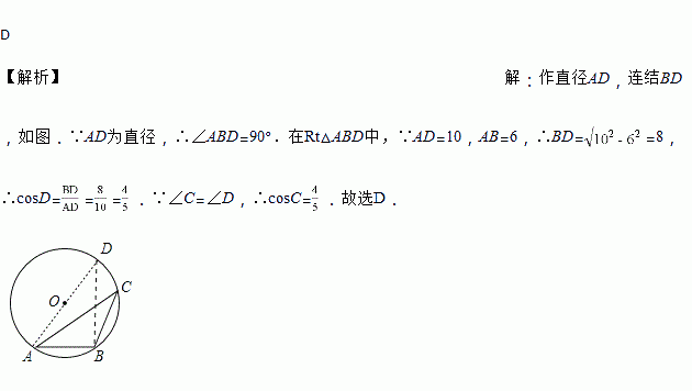 如图,在半径为5的⊙O中,弦AB=6,点C是优弧