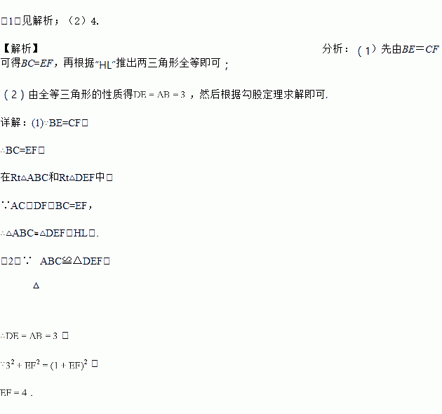 如图,△ABC与△DEF边BC、EF在同一直线上,AC与DE相交于点G,且∠ABC=∠DEF=90°,AC=DF,BE=CF.