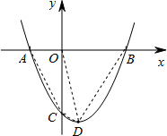 (2)将四边形ACDB的面积分割成S△AOC+S△DOC+S△ODB,利用A,B,C,D的坐标求出面积即可;