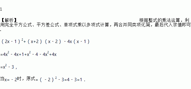 (2x﹣1)2+(x+2)(x﹣2)﹣4x(x﹣1)