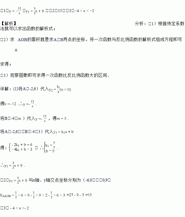 如图,一次函数与反比例函数的图象相交于A(-2,6),B(-4,)两点.