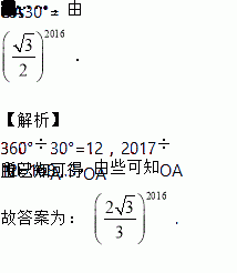 如图,Rt△OA0A1在平面直角坐标系内,∠OA0A1=90°,∠A0OA1=30°,以OA1为直角边向外作Rt△OA1A2,使∠OA1A2=90°,∠A1OA2=30°,以OA2为直角边向外作Rt△OA2A3,使∠OA2A3=90°,∠A2OA3=30°,按此方法进行下去,得到Rt△OA3A4,Rt△OA4A5,…,Rt△OA2016A2017,若点A0(1,0),则点A2017的横坐标为______.