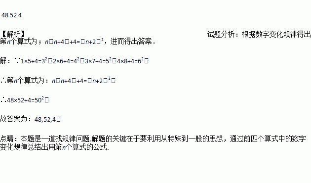 观察下列算式:1×5 + 4 = 32,2×6 + 4 = 42,3×7 + 4 = 52,4×8 + 4 = 62,请你在观察规律之后并用你得到的规律填空:_____×_____+_____=502 .