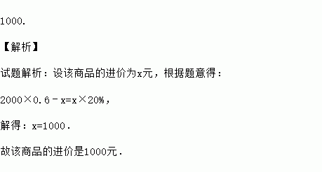 一台空调标价2000元,若按6折销售仍可获利20%,则这台空调的进价是 元.