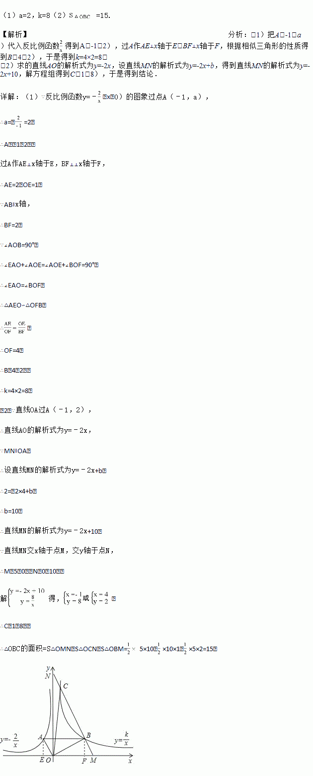 (2)过点B作MN∥OA,交x轴于点M,交y轴于点N,交双曲线y=于另一点C,求△OBC的面积.